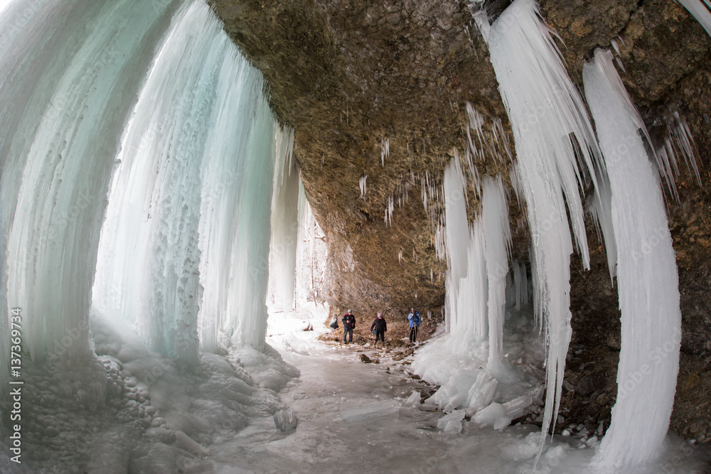 Frozen waterfall. Icefall Siklava skala, Slovakia