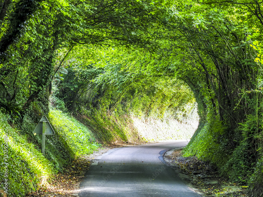 Grüntunnel, Idyllische Landstrasse, Calvados, Normandie, Frankr