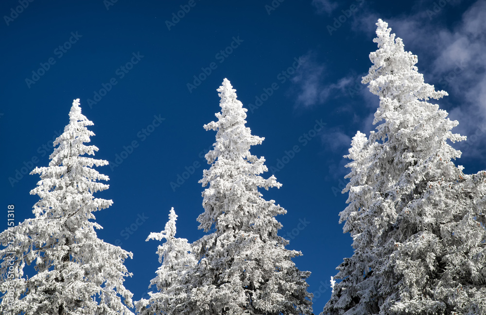 Snowy tops of the trees