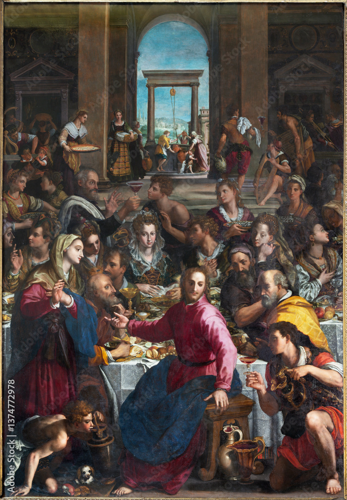 FLORENCE, ITALY - MARCH 21, 2025: The painting of Miracle in Cana in church Chiesa di Santa Agata by Alessandro Allori (1600).