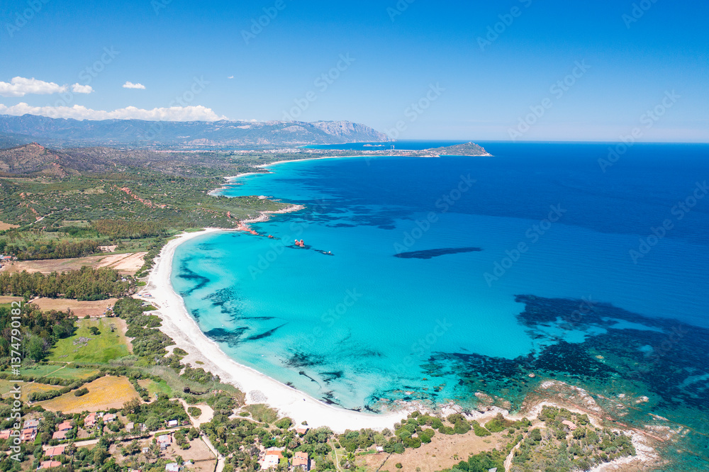 Aerial view to Baia Cea, Tortolì, Ogliastra, Nuoro, Sardinia, Italy