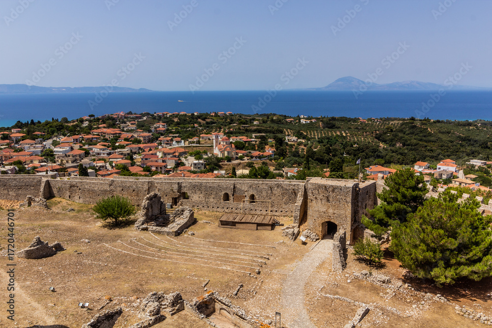 alphabet abstract in grunge letterpress wood type printing blocks stained by inks, decorative script font with ligatures