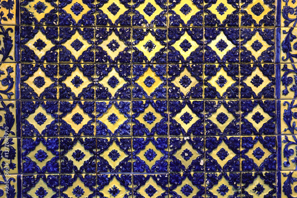 Ceramic azulejos on a wall in Lisbon, Portugal