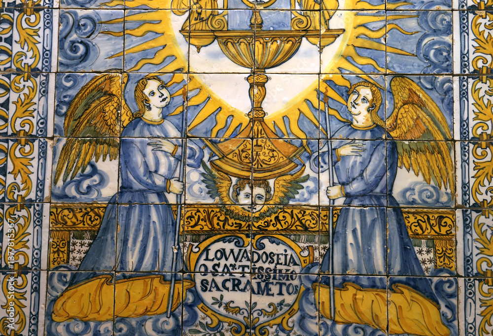 Ceramic azulejos on a wall in Lisbon, Portugal