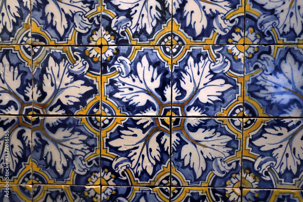 Ceramic azulejos on a wall in Lisbon, Portugal