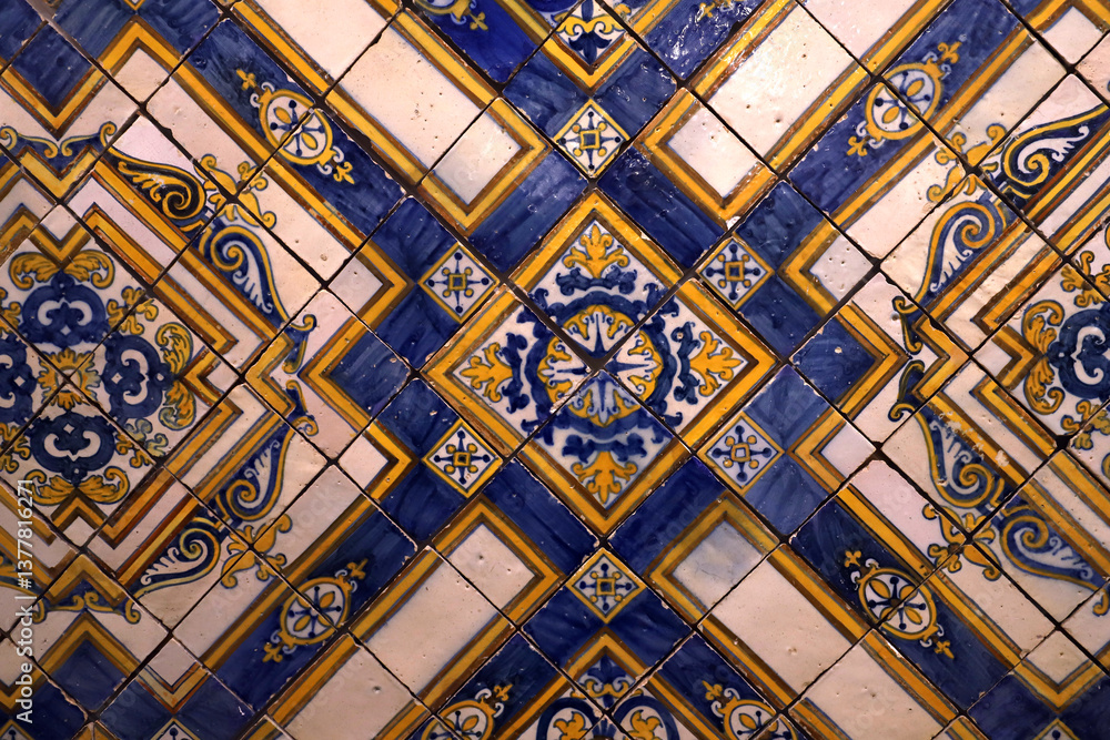 Ceramic azulejos on a wall in Lisbon, Portugal