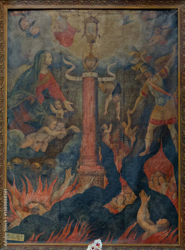 Tropea, ITALY - 11-01-2024: Painting (19th century) of Mary and the souls from purgatory.