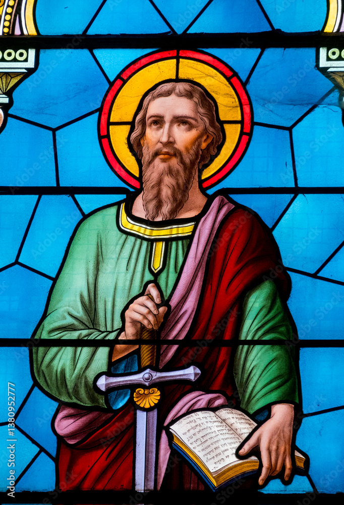 Stained glass (19th century) of Saint Paul the Apostle or Saint Paul l'Apôtre. Saint of the Roman Catholic Church.