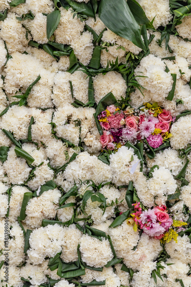 "Vibrant Natural Flower Wall Background – Colorful Floral Backdrop with Fresh Blooming Roses, Lilies, Daisies, Orchids, and Wildflowers for Wedding, Anniversary, birthday, office event backdrop"