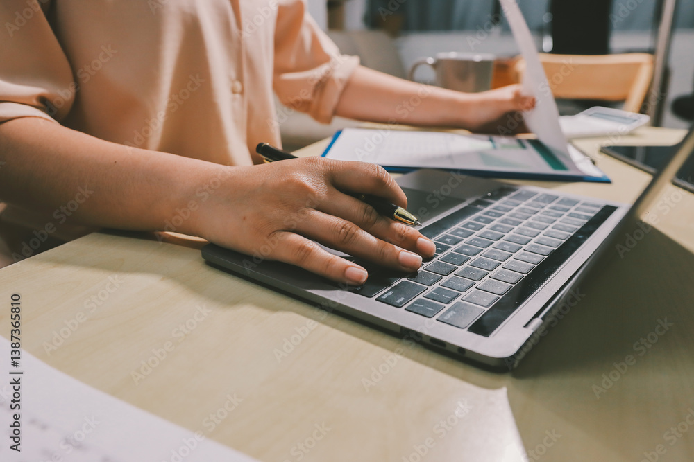 Tax deduction planning concept. Women use a calculator to calculate expenses and taxes to receive tax deductions for personal individual Income. tax return for individual persons.monthly expenses