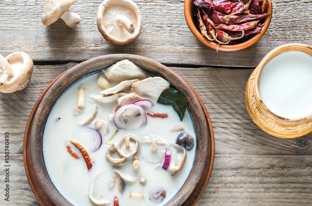 Bowl of thai tom kha kai soup