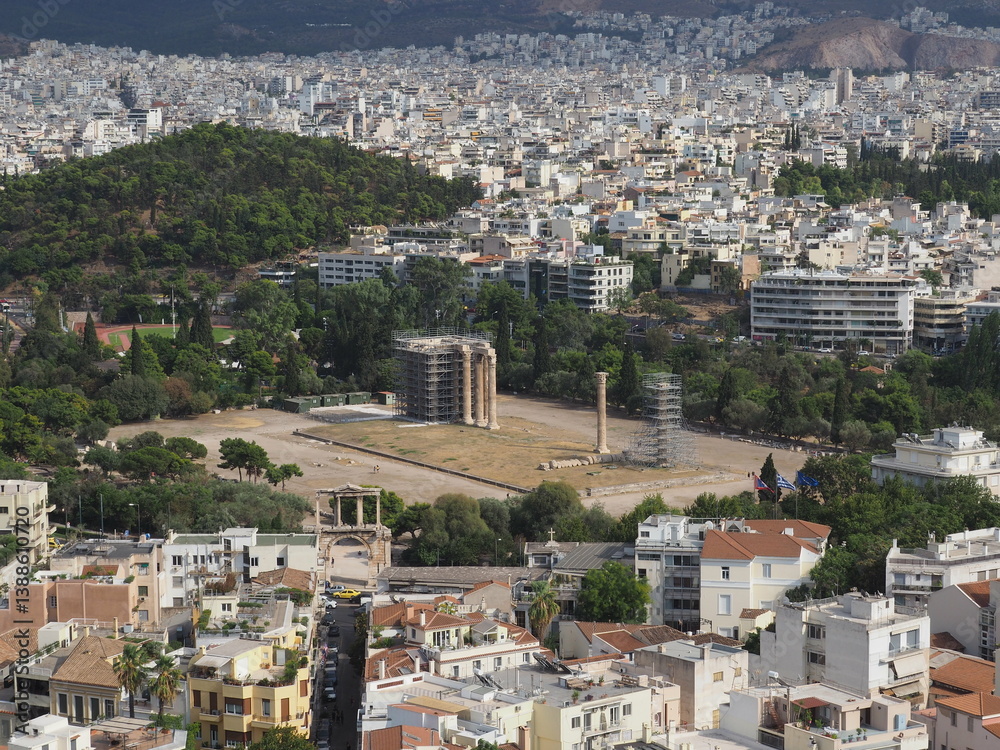 Sonniger Blick vom Akropolis-Hügel in Athen, Griechenland