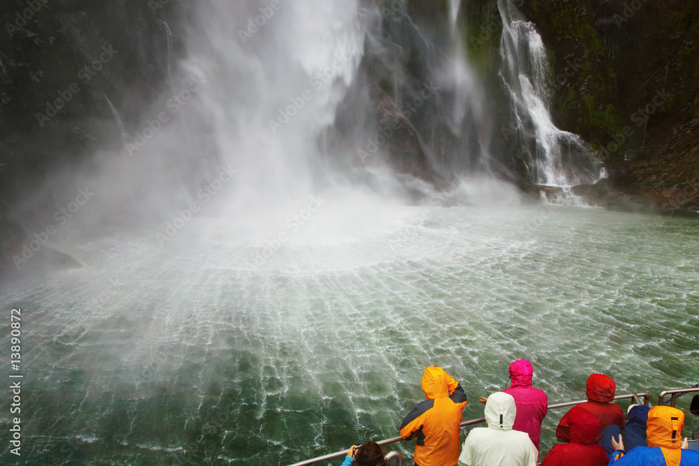 Spectacular vaterfall, Milford Sound fiord, New Zealand