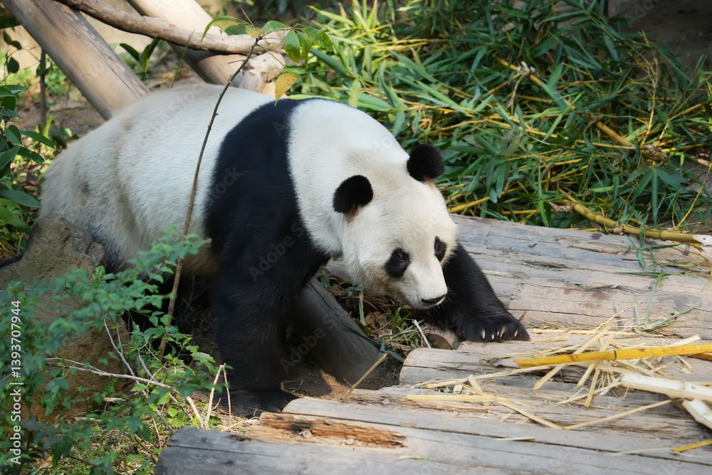 Portrait of panda bear close up. Cute China animals. Close up view of the panda's head.