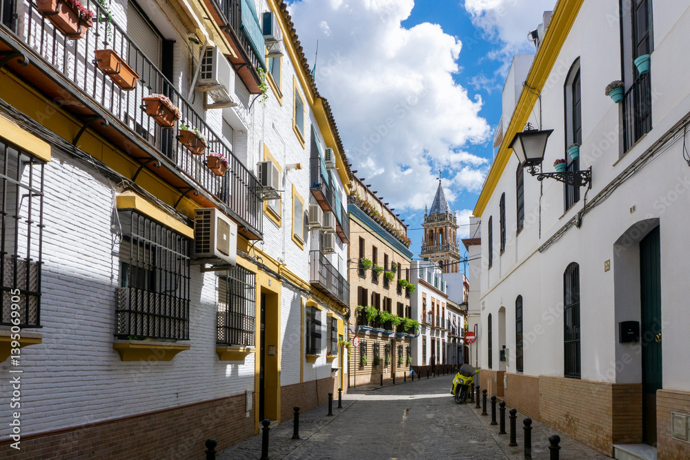 Views to Triana neighborhood at Seville. Triana barrio of Seville facades, Andalusia, Sevilla, Spain