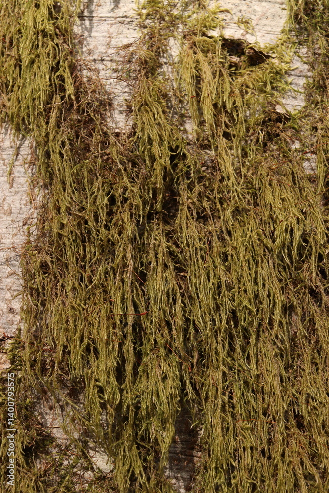 Mossy Tree Bark Natural Texture Background Green Foliage