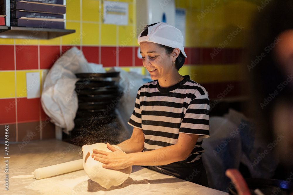 Elegant dance pose in a dynamic urban setting, featuring a vibrant red jumpsuit