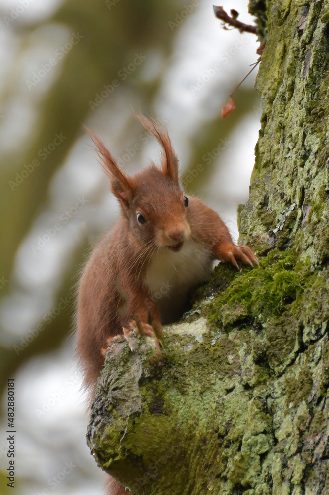 Two mud-covered buffaloes with big horns standing in the green grass in the Ngorongoro Crater in Tanzania Africa in the background the crater rim