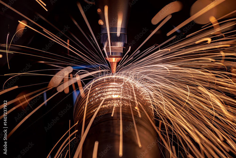 CNC Laser and gas cutting of metal, modern industrial technology.