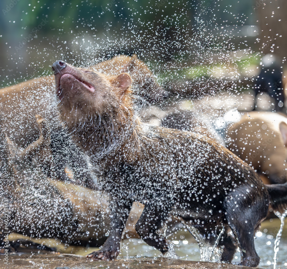 Bush dog (Speothos venaticus) in nature. Bush dogs are found from Panama in Central America, through much of South America.