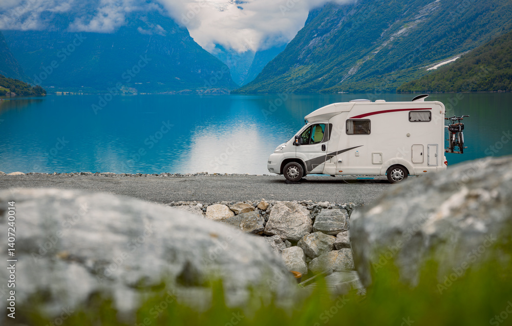 Family vacation travel RV, holiday trip in motorhome, Caravan car Vacation.