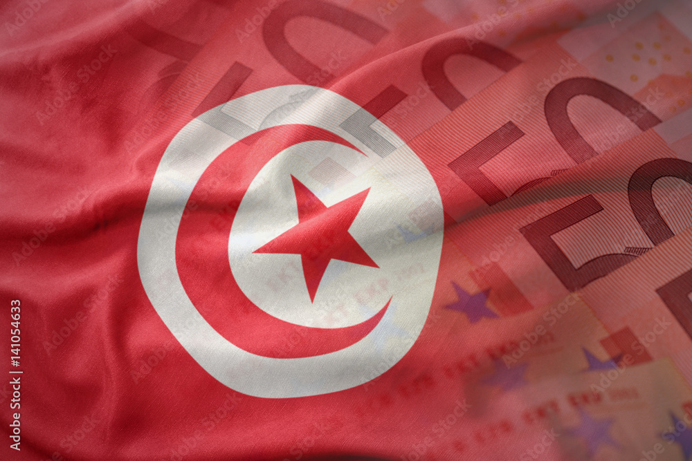 colorful waving national flag of tunisia on a euro money banknotes background. finance concept