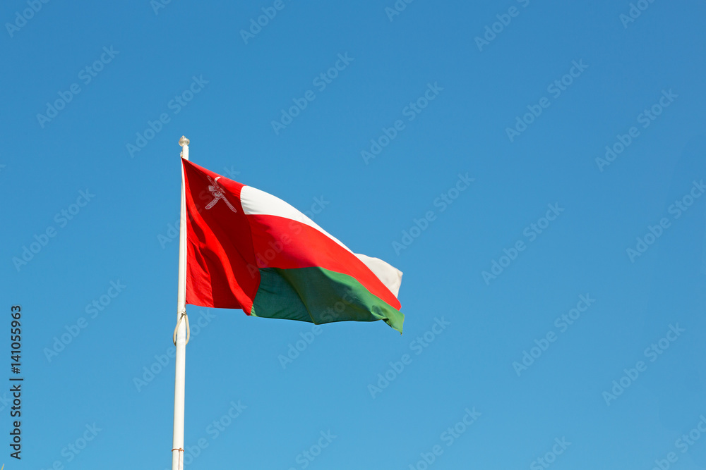 in oman waving flag and the cloudy sky