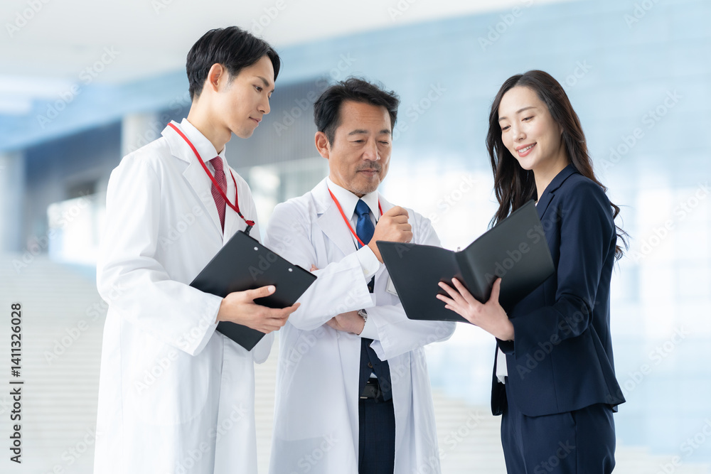病院で医者と商談をするMR