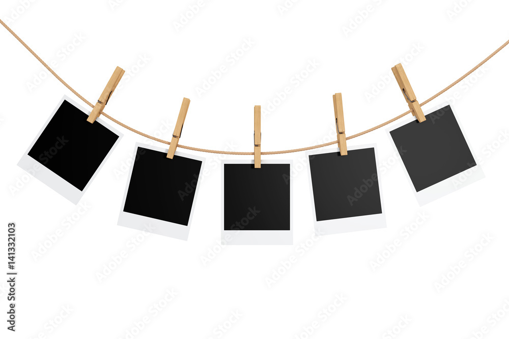 Photo Frames with Clothespins. 3d Rendering
