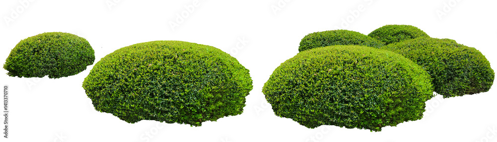 Set of green bushes, shrubs isolated on transparent background, for landscaping, boxwood bush, Euonymus