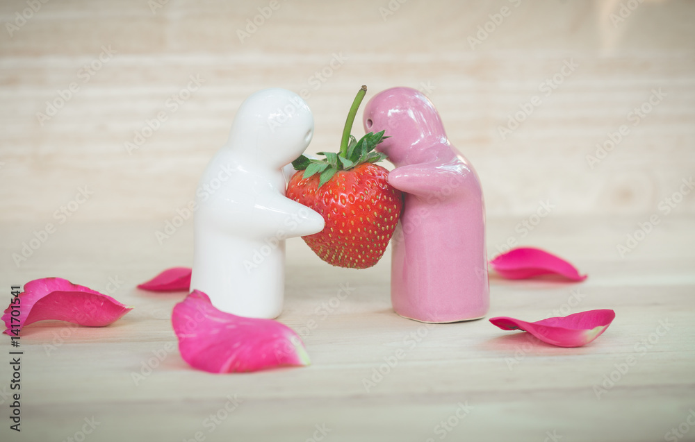 Ceramic toy giving a strawberry to couple for their love