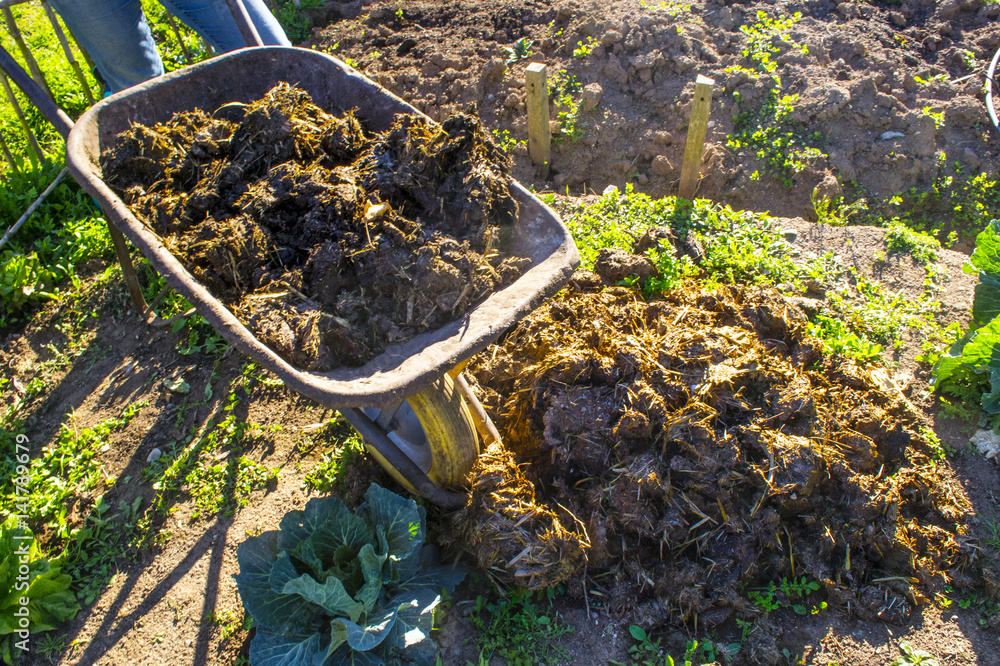 letame trasportato in un orto