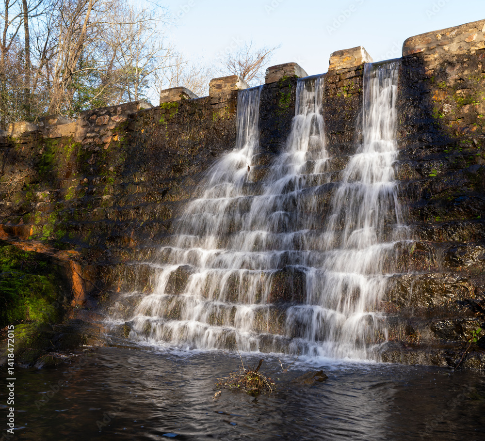 Water cascading down a stone dam, Fordyce Ricks Pond Dam, Hot Springs National Park, Arkansas