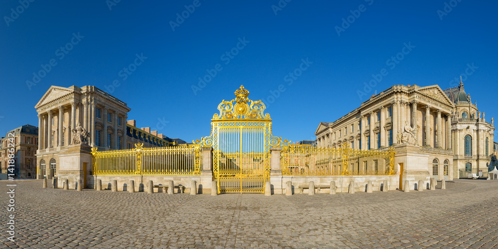 Versailles palace golden entrance,symbol of king louis XIV power, France.Panoramic view.