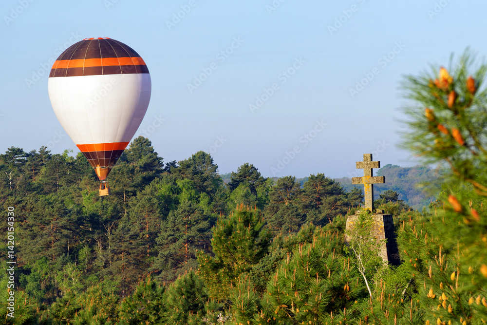 Hot air balloon flight above the Cross of Lorraine in Trois Pignons forest