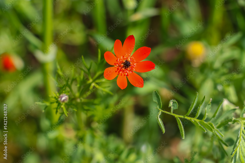 Large pheasant's eye (Adonis flammea) is a species of plant belonging to the family Ranunculaceae. It grows spontaneously in nature in spring and summer.