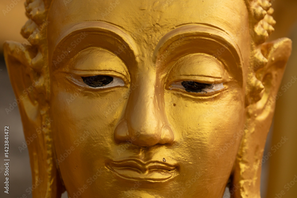 Face of one of the Buddha statues sitting at Wat Phousalao Temple, near Pakse, Champasak, Laos