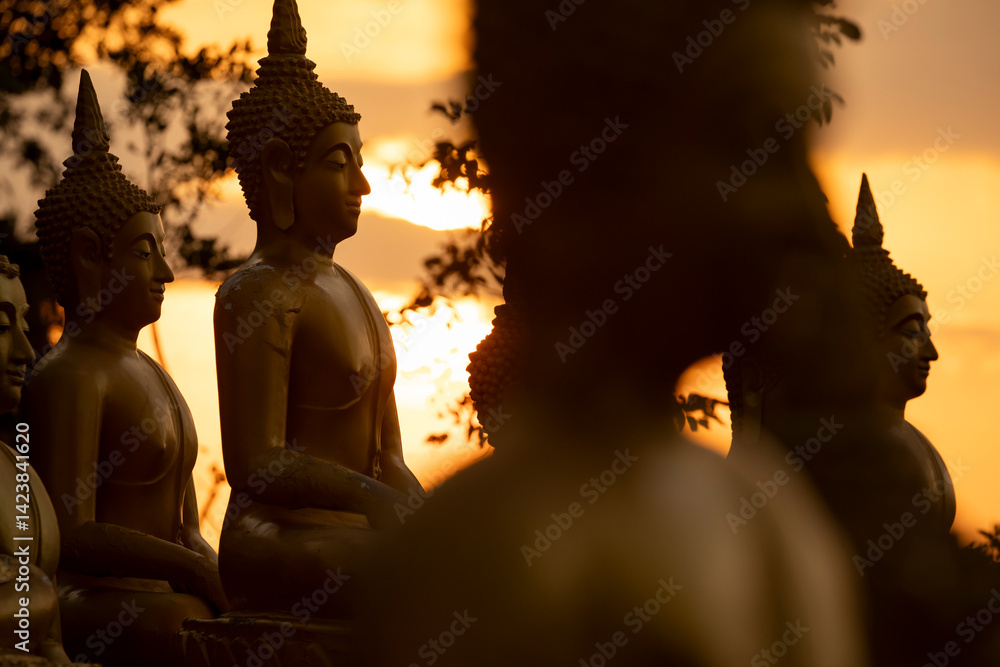 Backlight golden buddha statues at the Wat Phousalao temple, near Pakse, Champasak, Laos