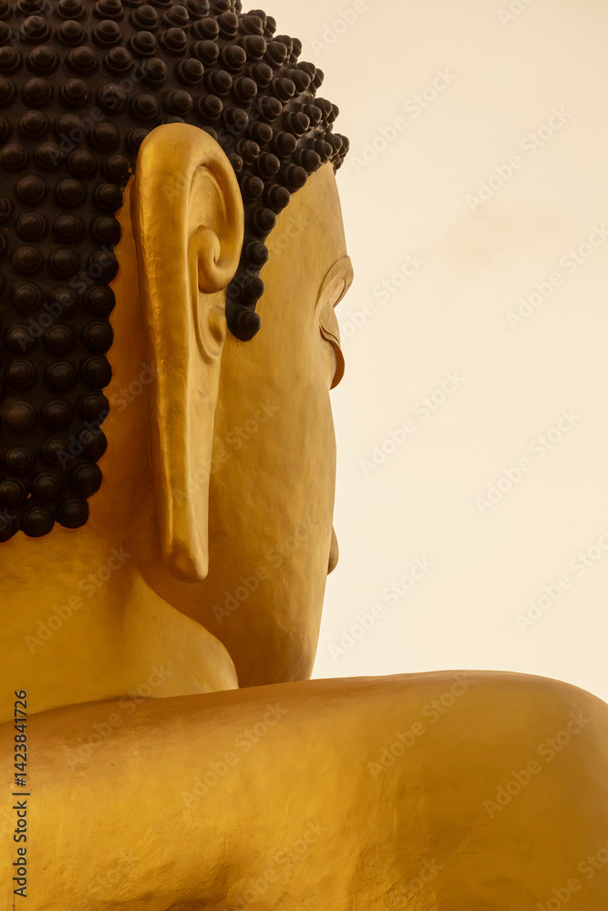 Close-up of a huge golden statue of Buddha, at Wat Phousalao Temple, near Pakse, Champasak, Laos