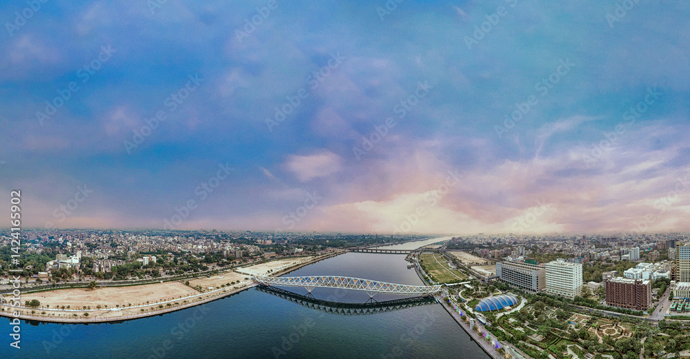 Atal Bridge, Ahmedabad City, Day View, Aerial View, Ahmedabad.