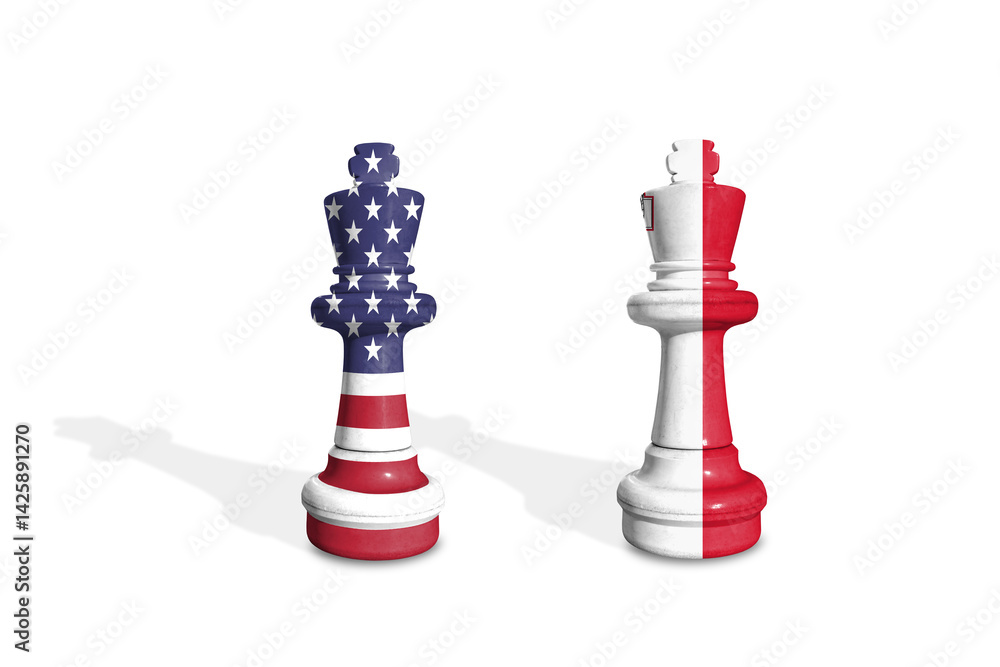 Chess made from USA and Malta flags. Trade, duty, customs and tariffs war