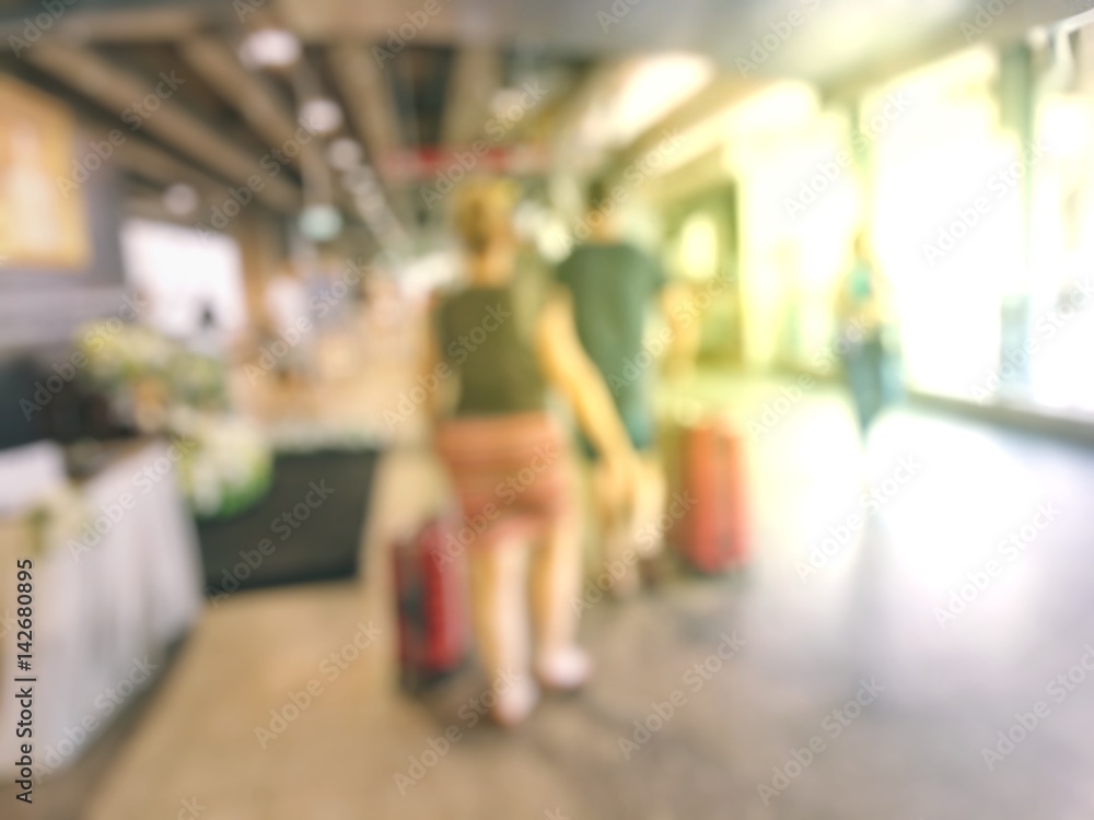 Blurred image of People at queue in front of Automatic ticket machine at train station.