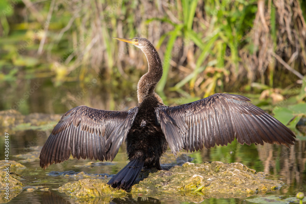 Anhinga with open wings (Anhinga anhinga), Everglades National Park, Florida