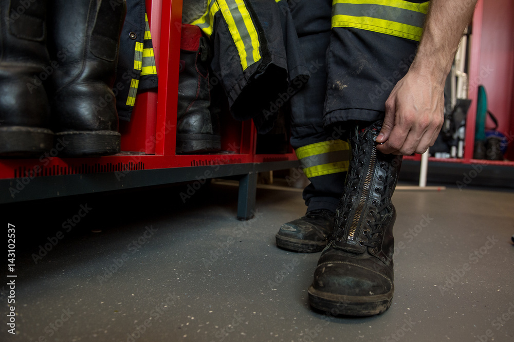 Feuerwehrmann zieht seine Stiefel an