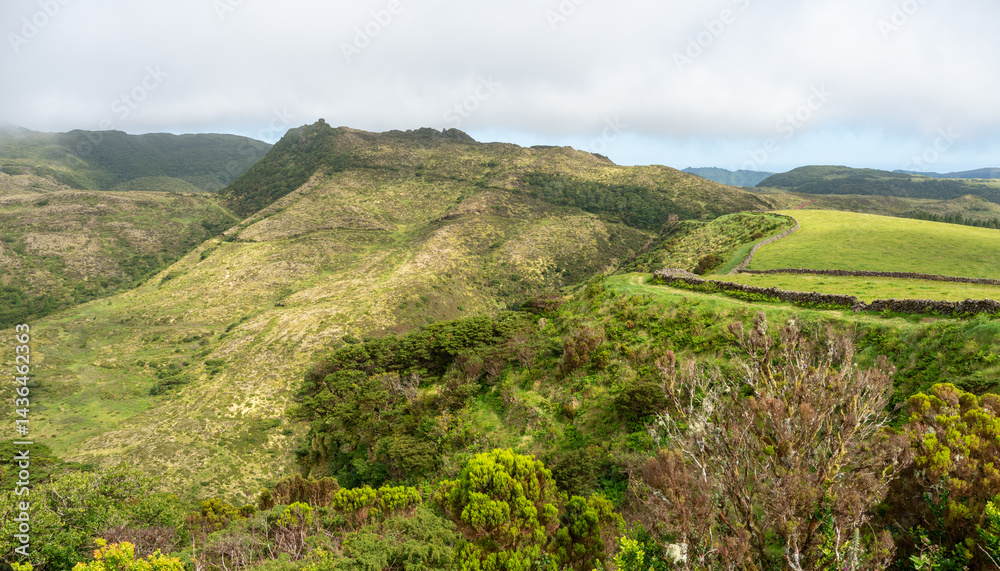 View over Rocha do Chambre on Trilho Rocha do Chambre - PRC06 on Terceira in the Azores of Portugal