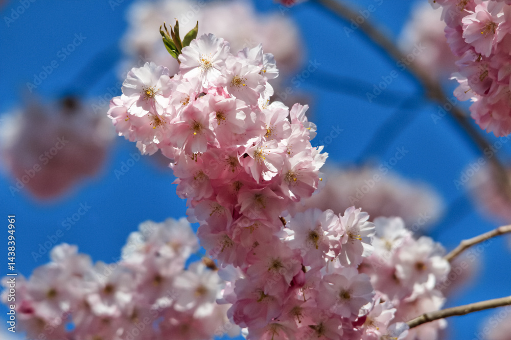 Spring red cherry blossoms in the park. Beautiful cherry blossoms on a sunny day