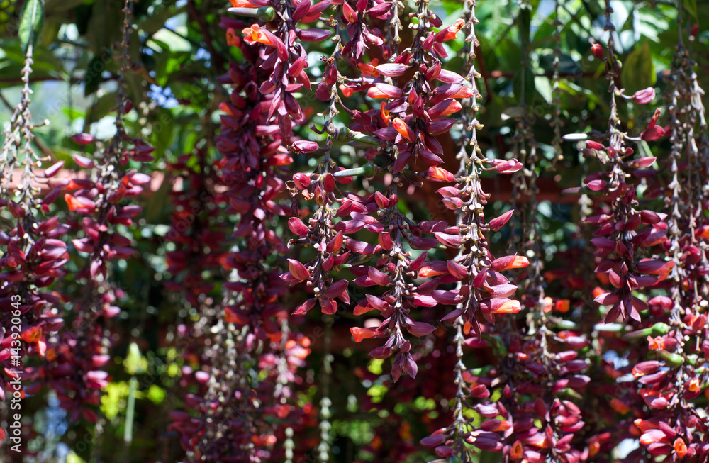 Thunbergia coccinea flowers. It is a genus of flowering plants in the family Acanthaceae.