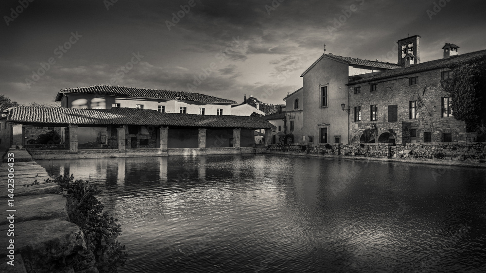 Monochromatic View of Italian Historic Baths of Bagno Vignoni