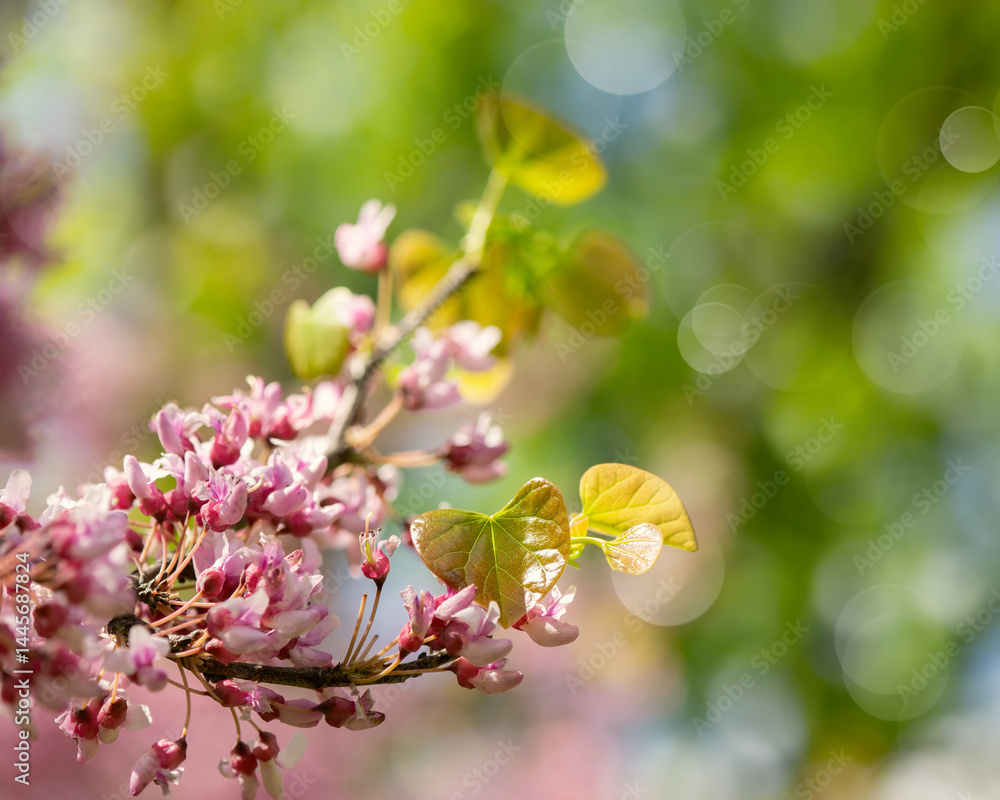 Springtime Symphony.. Beautiful Cercis siliquastrum Blossoms in Bloom. Seasonal backgrounds