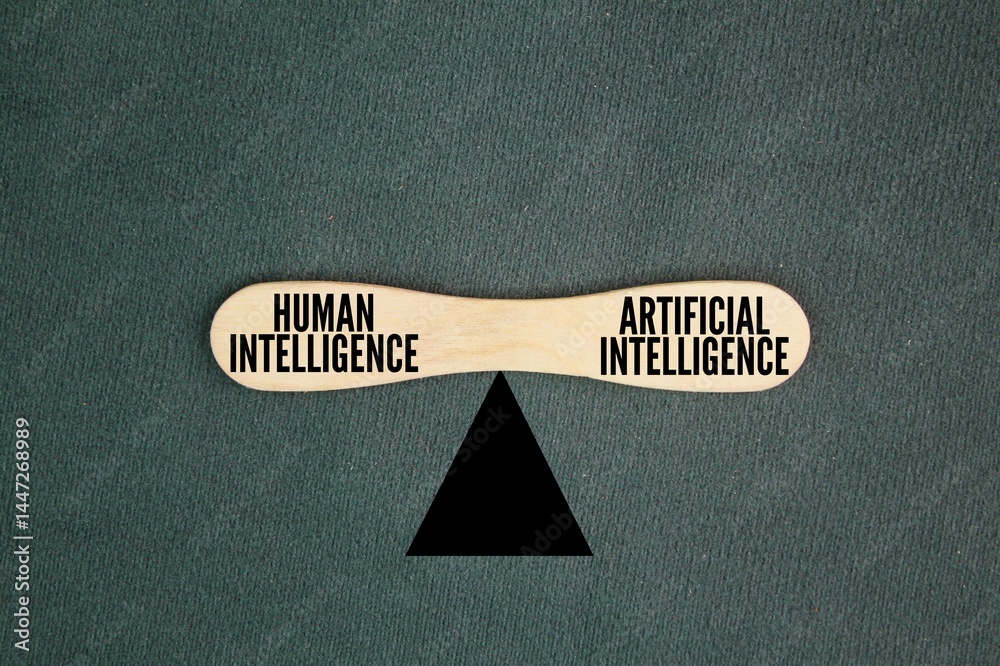 the balance between the words human intelligence vs. artificial intelligence. The balance between humans and AI. Create art generate content impact.